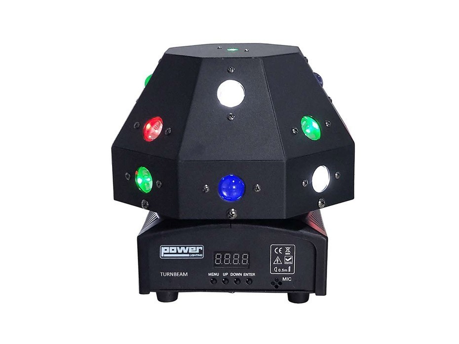 Le TURNBEAM est une boule multifacettes rotative générant des faisceaux multicolores RGBW et équipée d’un puissant laser multipoints de 50Mw. Les effets sont très dynamiques et originaux. Le TURNBEAM peut être disposé en centre de piste ou posé sur un support à plat mais aussi et surtout en façade ou l’effet est magnifique. Belle ouverture de 540°, pilotable via DMX, en mode AUTO ou MUSICAL, fonction Strobe pour plus de dynamique lors des rotations et des programmes. Bref le nouveau TURNBEAM est une véritable réussite. Produit coup de cœur ! C’est que du bonheur !